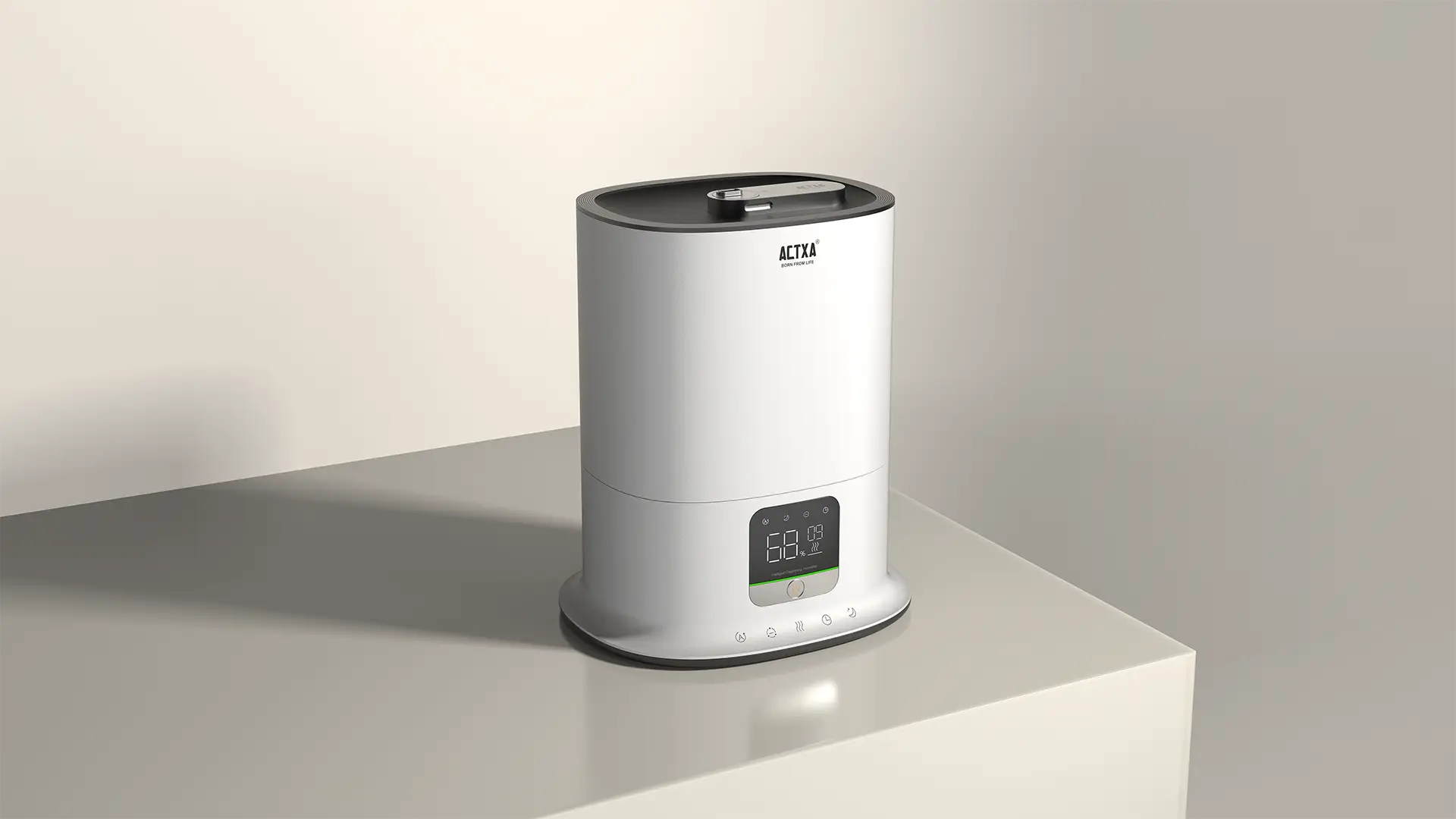 外觀線條優雅溫潤、親和力十足,集加濕與消毒功能於一體。採用基態氧團消毒與離子交換膜阻垢濾芯,除菌除病毒率 99%。4.5L 大容量水箱,噴霧高度 850mm,可長效滋潤 45 小時