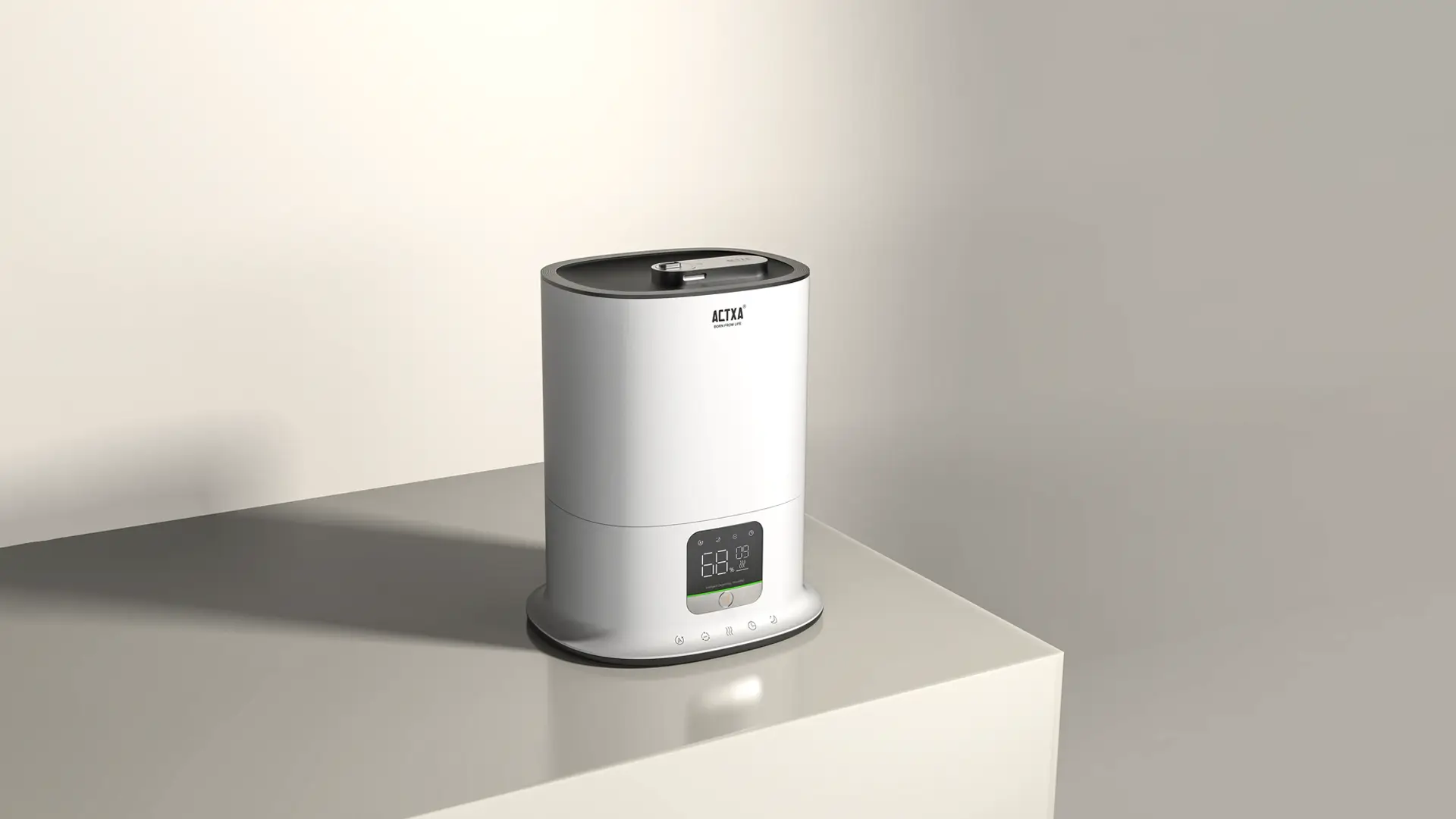 外觀線條優雅溫潤、親和力十足,集加濕與消毒功能於一體。採用基態氧團消毒與離子交換膜阻垢濾芯,除菌除病毒率 99%。4.5L 大容量水箱,噴霧高度 850mm,可長效滋潤 45 小時